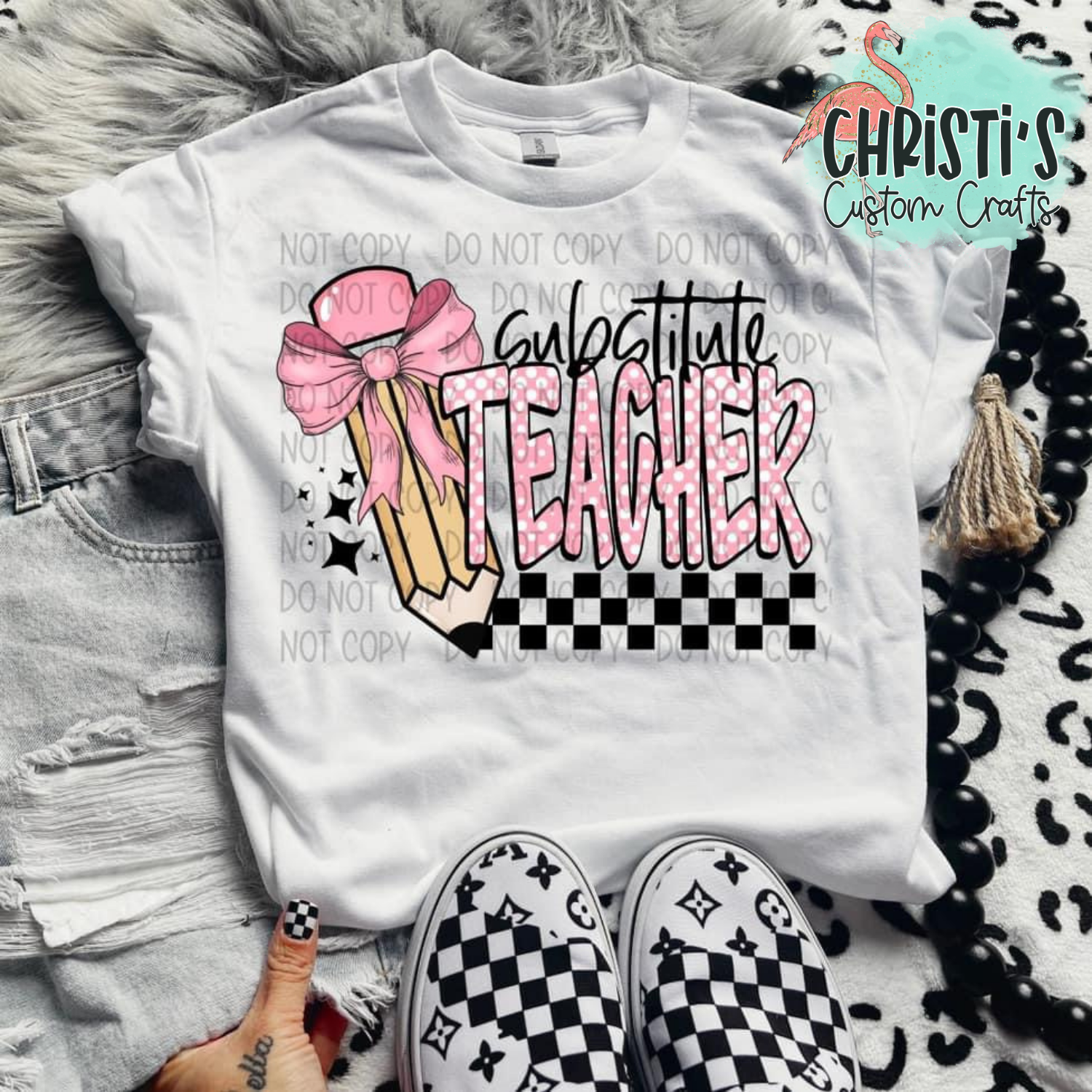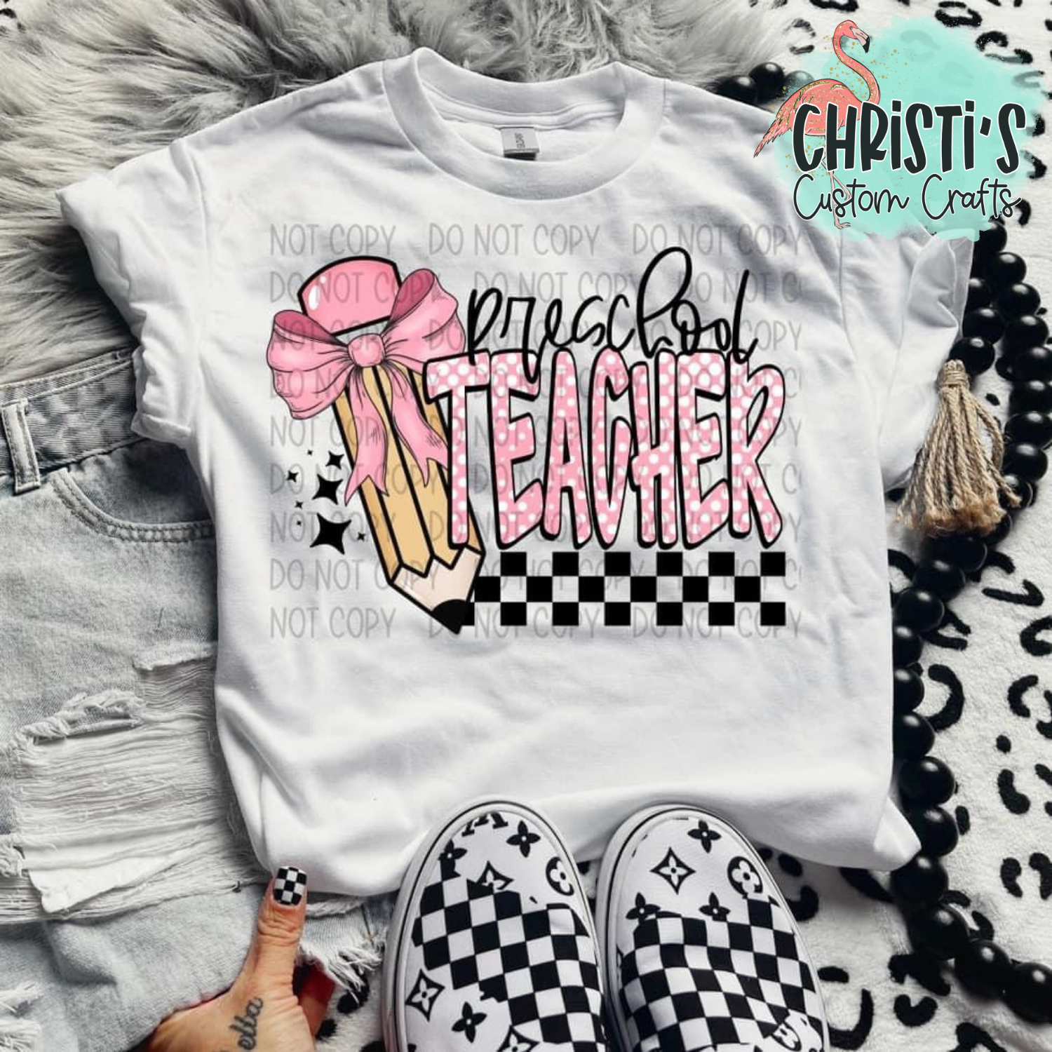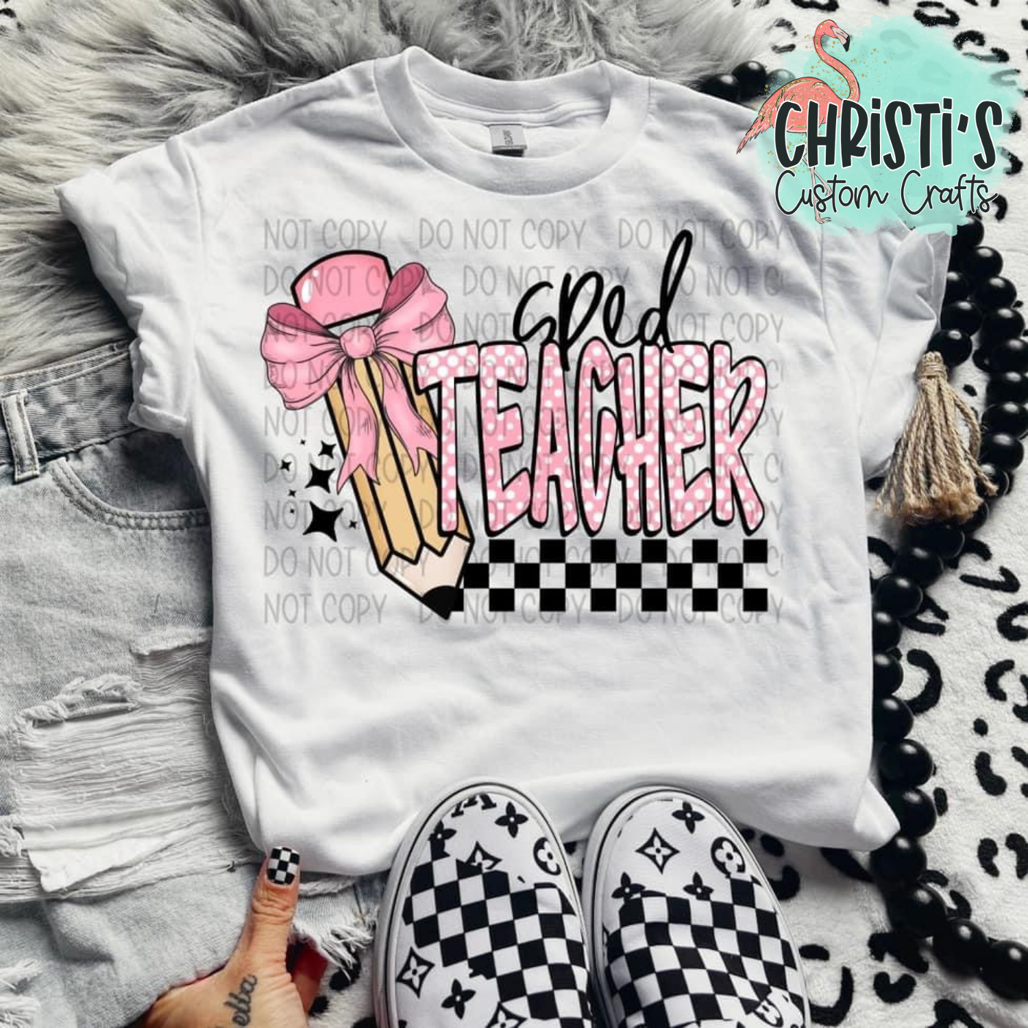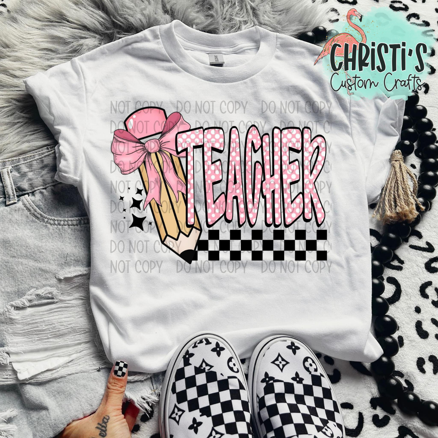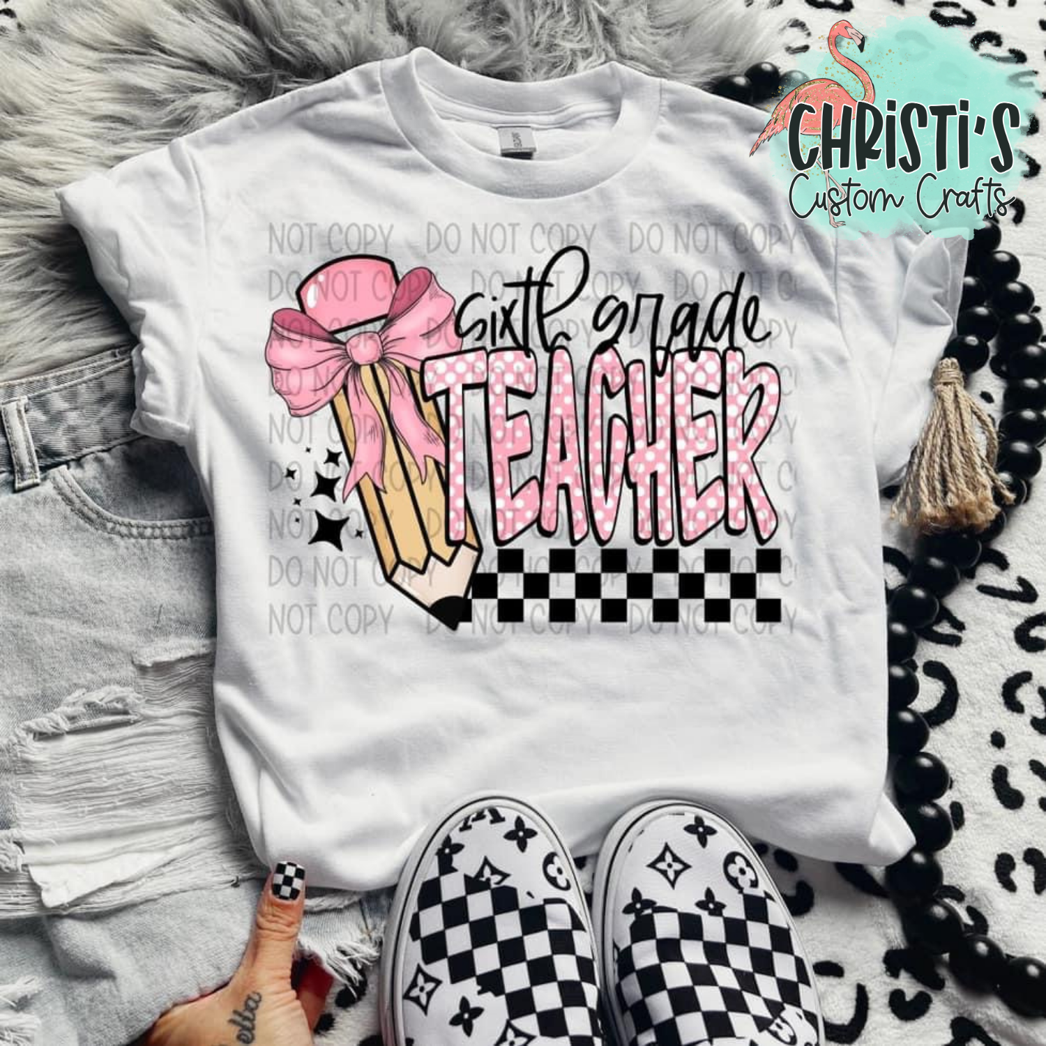 Checkered Pink Bow Pencil Grade Level Teachers